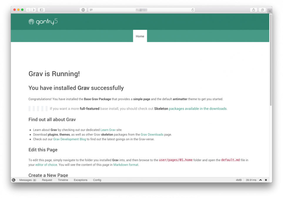 To get Gantry 5 running in Grav, it is suggested you start with a fresh Grav instance. Download a copy of Grav Core + Admin Plugin and set that up by following the instructions on Grav's site.