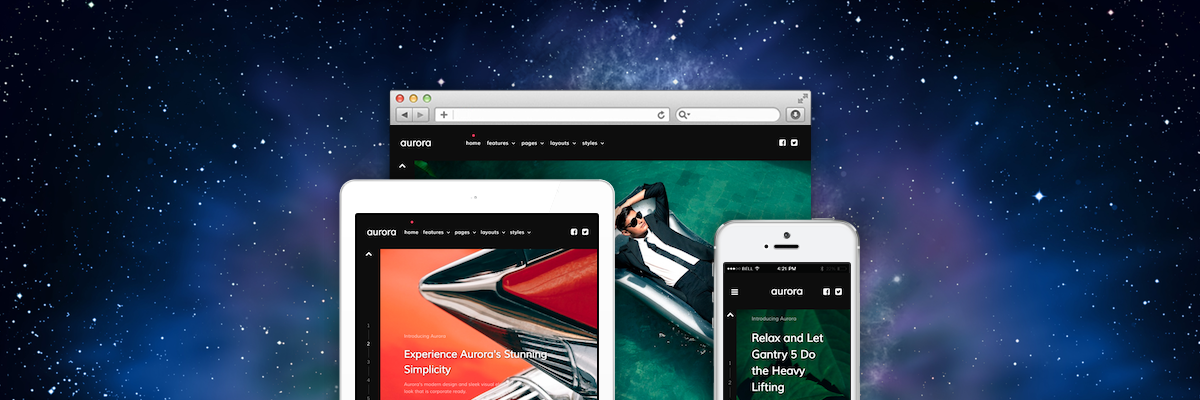 This includes RocketTheme's latest theme for WordPress, Grav, and Joomla: Aurora.