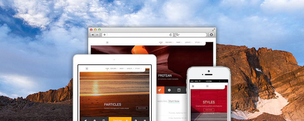 RocketTheme's latest design for WordPress and Joomla is Protean, a modern design featuring particles designed to let you swipe, tab, and slide your way through your content.